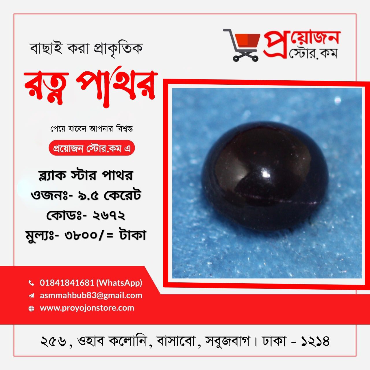 প্রয়োজন স্টোর ডটকম বাংলাদেশের প্রতিটি জেলার প্রত্যন্ত অঞ্চলের অ্যাস্টোলোজার স্যারদের জন্য বিশেষ সুবিধা প্রদান করে যা ভবিষ্যতেও অব্যাহত থাকবে, রত্ন পাথর অর্ডার করতে ও বিস্তারিত জানতে মোবাইলঃ 01841841681 Whatsapp:- 01841841681 ডেলিভারিঃ- ক্যাশ অন ডেলিভারি ৭২ ঘন্টা