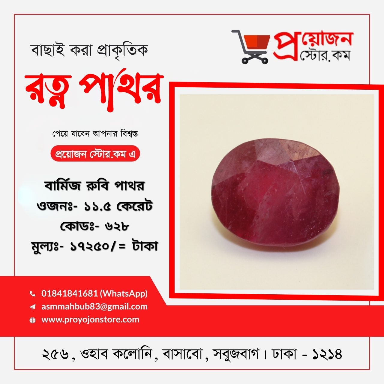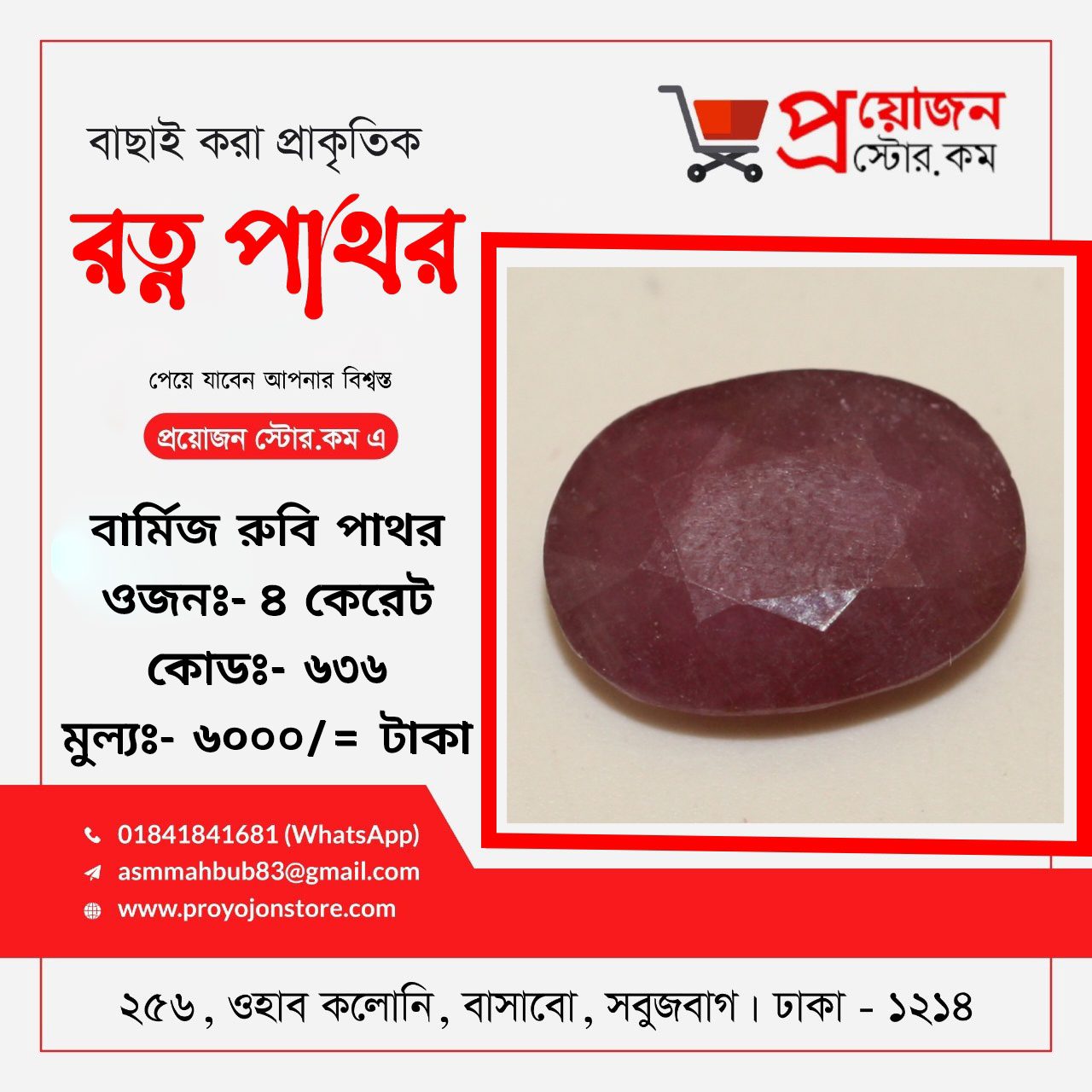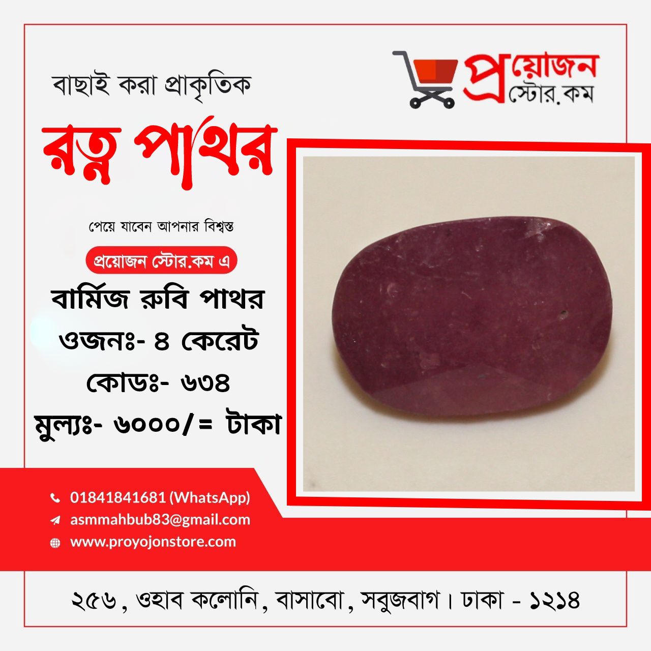 প্রয়োজন স্টোর ডটকম বাংলাদেশের প্রতিটি জেলার প্রত্যন্ত অঞ্চলের অ্যাস্টোলোজার স্যারদের জন্য বিশেষ সুবিধা প্রদান করে যা ভবিষ্যতেও অব্যাহত থাকবে, রত্ন পাথর অর্ডার করতে ও বিস্তারিত জানতে মোবাইলঃ 01841841681 Whatsapp:- 01841841681 ডেলিভারিঃ- ক্যাশ অন ডেলিভারি ৭২ ঘন্টা