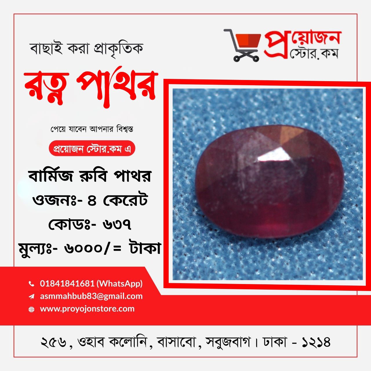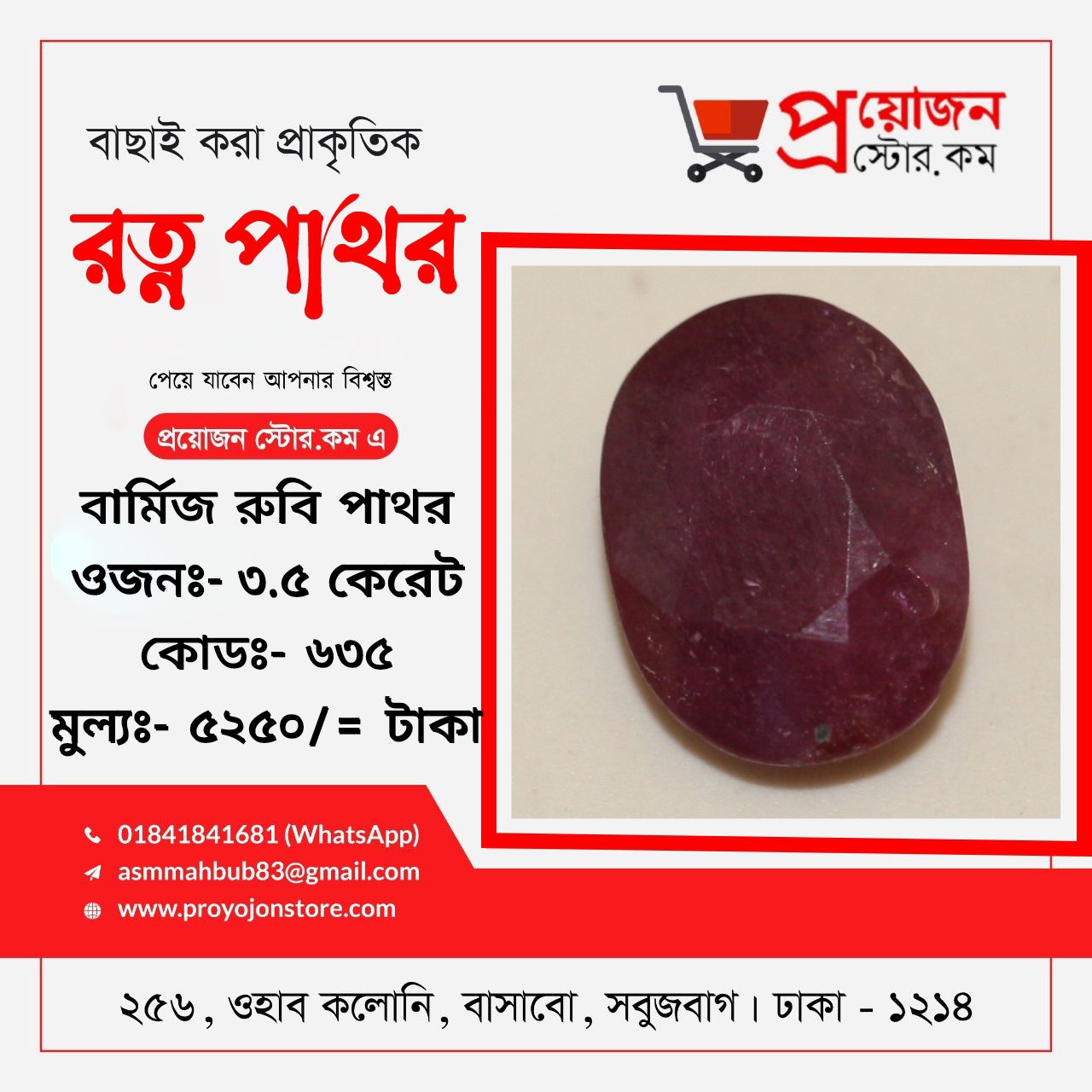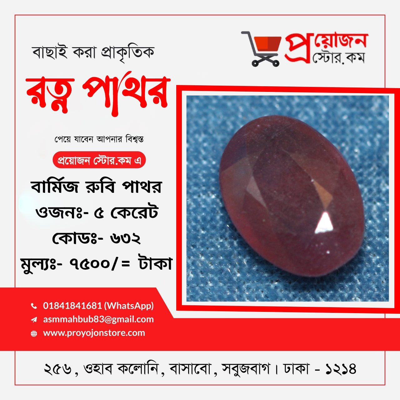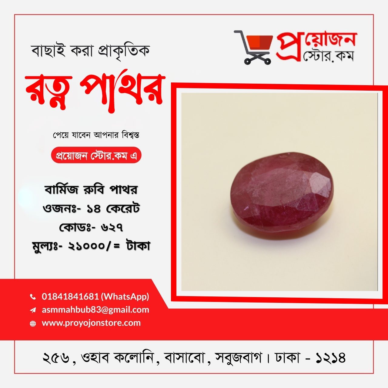 প্রয়োজন স্টোর ডটকম বাংলাদেশের প্রতিটি জেলার প্রত্যন্ত অঞ্চলের অ্যাস্টোলোজার স্যারদের জন্য বিশেষ সুবিধা প্রদান করে যা ভবিষ্যতেও অব্যাহত থাকবে, রত্ন পাথর অর্ডার করতে ও বিস্তারিত জানতে মোবাইলঃ 01841841681 Whatsapp:- 01841841681 ডেলিভারিঃ- ক্যাশ অন ডেলিভারি ৭২ ঘন্টা
