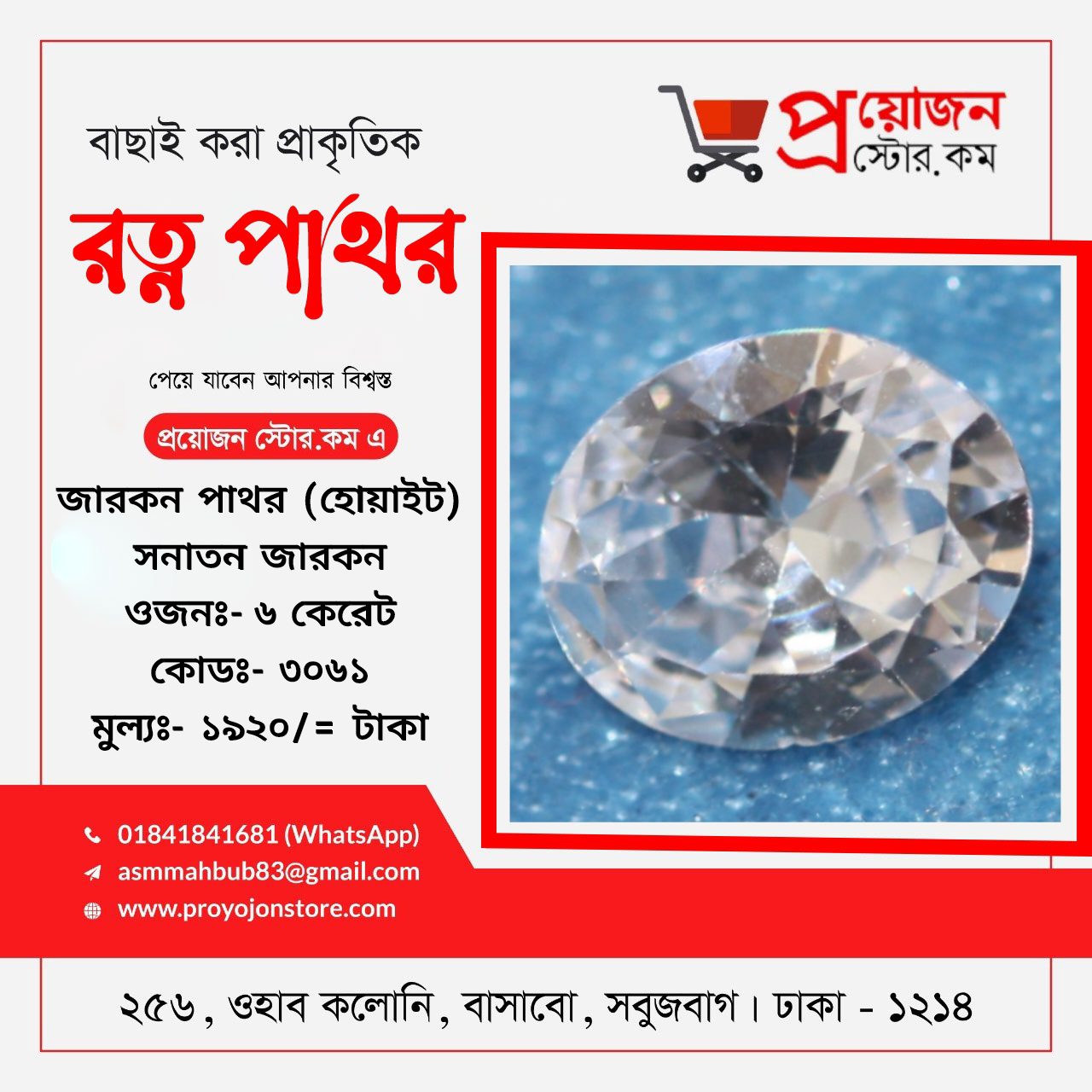 প্রয়োজন স্টোর ডটকম বাংলাদেশের প্রতিটি জেলার প্রত্যন্ত অঞ্চলের অ্যাস্টোলোজার স্যারদের জন্য বিশেষ সুবিধা প্রদান করে যা ভবিষ্যতেও অব্যাহত থাকবে, রত্ন পাথর অর্ডার করতে ও বিস্তারিত জানতে মোবাইলঃ 01841841681 Whatsapp:- 01841841681 ডেলিভারিঃ- ক্যাশ অন ডেলিভারি ৭২ ঘন্টা